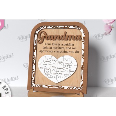 Grandmother Puzzle Πλαίσιο Κοπή με λέιζερ Πρόκειται για ψηφιακό σχεδίου, ιδανικό για κοπή με ή plotter. Κατασκευασμένο απο Ξύλο από plywood [3mm ή 4mm], κομμένο με ακρίβεια στην βιοτεχνία Intrahome . Το φυσικό ξύλο προσφέρει μια κομψή, αυθεντική υφή και μπορεί εύκολα να βαφτεί ή να διακοσμηθεί σύμφωνα με το προσωπικό σας γούστο. Ελληνική παραγωγή – Κατασκευάζεται στην Ελλάδα με προσοχή στη λεπτομέρεια και υψηλές προδιαγραφές ποιότητας. ✔️ Υλικό: Plywood υψηλής ποιότητας ✔️ Διατίθεται σε πάχος 3mm ή 4mm ✔️ Ελαφρύ, ανθεκτικό και εύκολο στη χρήση ✔️ Ιδανικό για βάψιμο, χάραξη, κόλληση και χειροτεχνίες ✔️ Κατάλληλο για μπομπονιέρες, διακόσμηση, δώρα και DIY projects ✅ Εγγύηση 2 ετών – Σε περίπτωση σπασίματος, η αντικατάσταση γίνεται άμεσα, χάρη στην τοπική ελληνική παραγωγή μας. Ιδανικό για δημιουργικούς ανθρώπους που αγαπούν το DIY. Μπορεί να γίνει ξεχωριστό δώρο με προσωπικό χαρακτήρα. Φέρνει “χειροποίητη” αισθητική στη διακόσμηση. -files- Ελληνική χειροποίητη παραγωγή → στ
