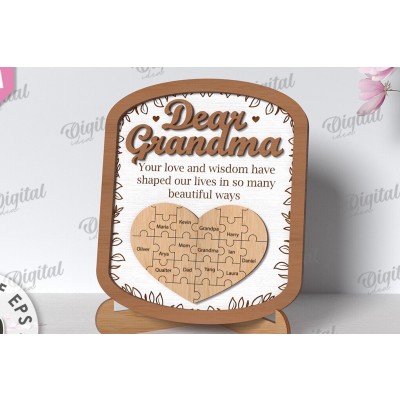 Grandmother Puzzle Πλαίσιο Κοπή με λέιζερ Πρόκειται για ψηφιακό σχεδίου, ιδανικό για κοπή με ή plotter. Κατασκευασμένο απο Ξύλο από plywood [3mm ή 4mm], κομμένο με ακρίβεια στην βιοτεχνία Intrahome . Το φυσικό ξύλο προσφέρει μια κομψή, αυθεντική υφή και μπορεί εύκολα να βαφτεί ή να διακοσμηθεί σύμφωνα με το προσωπικό σας γούστο. Ελληνική παραγωγή – Κατασκευάζεται στην Ελλάδα με προσοχή στη λεπτομέρεια και υψηλές προδιαγραφές ποιότητας. ✔️ Υλικό: Plywood υψηλής ποιότητας ✔️ Διατίθεται σε πάχος 3mm ή 4mm ✔️ Ελαφρύ, ανθεκτικό και εύκολο στη χρήση ✔️ Ιδανικό για βάψιμο, χάραξη, κόλληση και χειροτεχνίες ✔️ Κατάλληλο για μπομπονιέρες, διακόσμηση, δώρα και DIY projects ✅ Εγγύηση 2 ετών – Σε περίπτωση σπασίματος, η αντικατάσταση γίνεται άμεσα, χάρη στην τοπική ελληνική παραγωγή μας. Ιδανικό για δημιουργικούς ανθρώπους που αγαπούν το DIY. Μπορεί να γίνει ξεχωριστό δώρο με προσωπικό χαρακτήρα. Φέρνει “χειροποίητη” αισθητική στη διακόσμηση. -files- Ελληνική χειροποίητη παραγωγή → στ