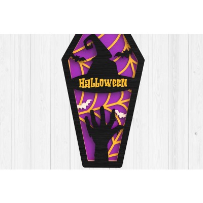 Σετ των 2 Intra απο ξύλο plywood 3mm-4mm πάχος - Halloween Coffin 3D Laser Cut Δίασταση 15x15 cm INTRAFABR-102203313