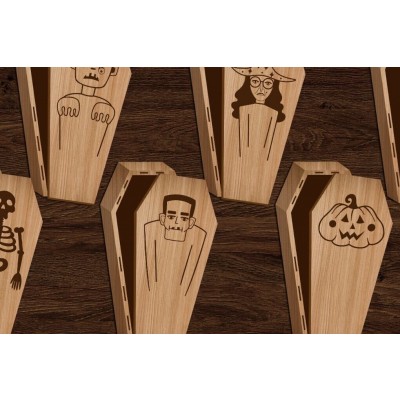 Κουτιά δώρου Halloween Coffin Cut Laser Πρόκειται για ψηφιακό σχεδίου, ιδανικό για κοπή με ή plotter. Κατασκευασμένο απο Ξύλο από plywood [3mm ή 4mm], κομμένο με ακρίβεια στην βιοτεχνία Intrahome . Το φυσικό ξύλο προσφέρει μια κομψή, αυθεντική υφή και μπορεί εύκολα να βαφτεί ή να διακοσμηθεί σύμφωνα με το προσωπικό σας γούστο. Ελληνική παραγωγή – Κατασκευάζεται στην Ελλάδα με προσοχή στη λεπτομέρεια και υψηλές προδιαγραφές ποιότητας. ✔️ Υλικό: Plywood υψηλής ποιότητας ✔️ Διατίθεται σε πάχος 3mm ή 4mm ✔️ Ελαφρύ, ανθεκτικό και εύκολο στη χρήση ✔️ Ιδανικό για βάψιμο, χάραξη, κόλληση και χειροτεχνίες ✔️ Κατάλληλο για μπομπονιέρες, διακόσμηση, δώρα και DIY projects ✅ Εγγύηση 2 ετών – Σε περίπτωση σπασίματος, η αντικατάσταση γίνεται άμεσα, χάρη στην τοπική ελληνική παραγωγή μας. Ιδανικό για δημιουργικούς ανθρώπους που αγαπούν το DIY. Μπορεί να γίνει ξεχωριστό δώρο με προσωπικό χαρακτήρα. Φέρνει “χειροποίητη” αισθητική στη διακόσμηση. -files- Ελληνική χειροποίητη παραγωγή → στηρ