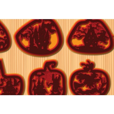 Σετ των 2 Intra απο ξύλο plywood 3mm-4mm πάχος – Δέσμη από Halloween Pumpkin Paper Cut Δίασταση 20x20 cm INTRAFABR-34690638