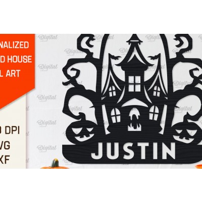 Σετ των 2 Intra απο ξύλο plywood 3mm-4mm πάχος – Εξατομικευμένη περικοπή λέιζερ Haunted House Δίασταση 20x20 cm INTRAFABR-104232629