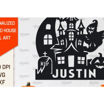 Σετ των 2 Intra απο ξύλο plywood 3mm-4mm πάχος – Εξατομικευμένη περικοπή λέιζερ Haunted House Δίασταση 20x20 cm INTRAFABR-104232934