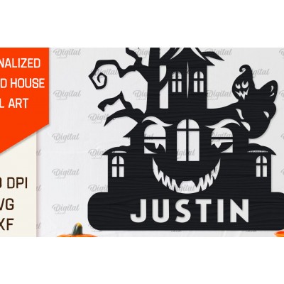Σετ των 2 Intra απο ξύλο plywood 3mm-4mm πάχος – Εξατομικευμένη περικοπή λέιζερ Haunted House Δίασταση 20x20 cm INTRAFABR-104233383