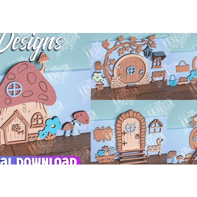 Σετ των 2 Intra απο ξύλο plywood 3mm-4mm πάχος - Πακέτο κοπής Laser Door Fairy Garden Δίασταση 30x20 cm INTRAFABR-96214821