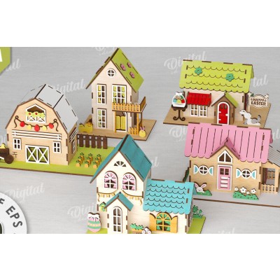 Σετ των 2 Intra απο ξύλο plywood 3mm-4mm πάχος – Ξύλινα Πασχαλινά Σπίτια LaserCut Bundle Δίασταση 20x20 cm INTRAFABR-116178091