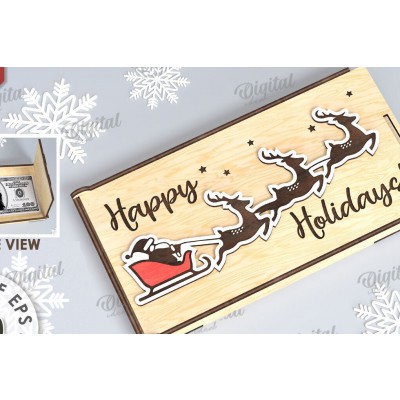 Σετ των 2 Intra απο ξύλο plywood 3mm-4mm πάχος Χριστουγεννιάτικο Money Box Σχέδιο κοπής με λέιζερ Δίασταση 15x15 cm INTRAFABR-109502206