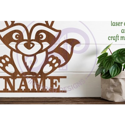 Σετ των 2 Intra απο ξύλο plywood 3mm-4mm πάχος – Πρότυπο κοπής λέιζερ Name Raccoon Δίασταση 20x20 cm INTRAFABR-82508379