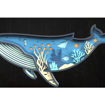 Σετ των 2 Intra απο ξύλο plywood 3mm-4mm πάχος – Φάλαινα Ocean Scene 3D Cut Δίασταση 20x20 cm INTRAFABR-119659833