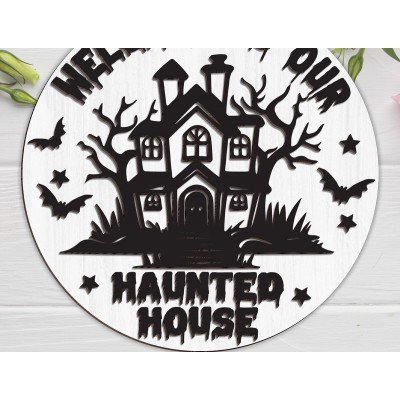 Σετ των 2 Intra απο ξύλο plywood 3mm-4mm πάχος – Καλώς ήρθατε στο Our Haunted House Δίασταση 20x20 cm INTRAFABR-102201087
