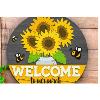 Όνομα Προϊόντος Σετ των 2 Intra απο ξύλο plywood 3mm-4mm πάχος – Καλώς ήρθατε στο Our Porch, Sunflower Door Δίασταση 20x20 cm INTRAFABR-121687313