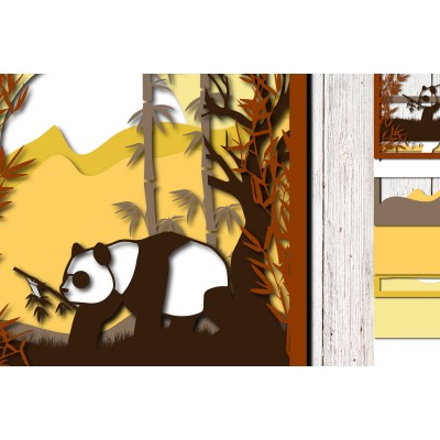 Σετ των 2 Intra απο ξύλο plywood 3mm-4mm πάχος – Panda σε πολυστρωματική κοπή λέιζερ ζούγκλας Δίασταση 20x20 cm INTRAFABR-23313918