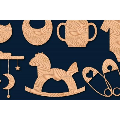 Σετ των 2 Intra απο ξύλο plywood 3mm-4mm πάχος – Πακέτο Paper Cut Baby Element Δίασταση 20x20 cm INTRAFABR-72300984