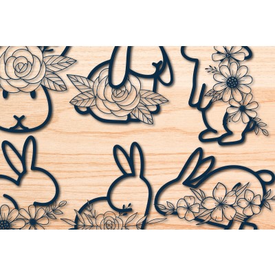 Σετ των 2 Intra απο ξύλο plywood 3mm-4mm πάχος – Paper Cut Bunny Flowers 3d Bundle Δίασταση 20x20 cm INTRAFABR-30203639