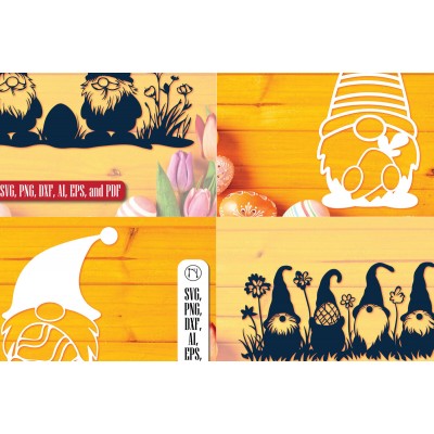 Όνομα Προϊόντος Σετ των 2 Intra απο ξύλο plywood 3mm-4mm πάχος – Πακέτο Paper Cut Easter Gnome Δίασταση 20x20 cm INTRAFABR-117931069