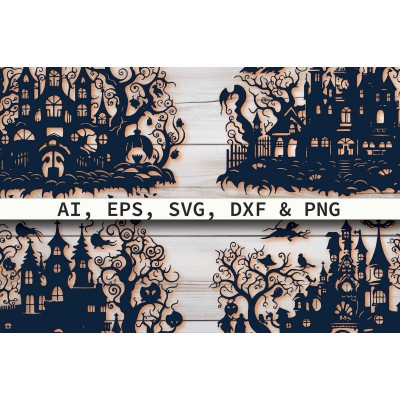 Όνομα Προϊόντος Σετ των 2 Intra απο ξύλο plywood 3mm-4mm πάχος – Paper Cut Haunted House Πακέτο Δίασταση 20x20 cm INTRAFABR-81036905