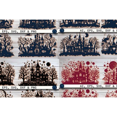 Όνομα Προϊόντος Σετ των 2 Intra απο ξύλο plywood 3mm-4mm πάχος – Paper Cut Haunted House Πακέτο Δίασταση 20x20 cm INTRAFABR-81038187