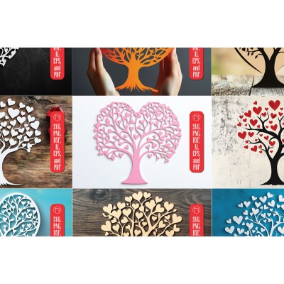 Κριτικάρετε το(τα): Σετ των 2 Intra απο ξύλο plywood 3mm-4mm πάχος – Paper Cut Love Tree Bundle Δίασταση 20x20 cm INTRAFABR-112697831