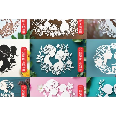 Σετ των 2 Intra απο ξύλο plywood 3mm-4mm πάχος – Πακέτο Paper Cut Mother's Day Δίασταση 20x20 cm INTRAFABR-117425686
