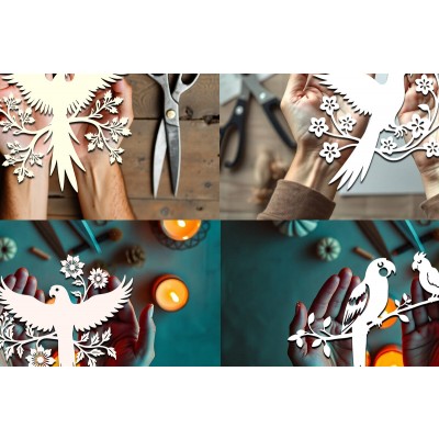 Κριτικάρετε το(τα): Σετ των 2 Intra απο ξύλο plywood 3mm-4mm πάχος – Πακέτο Paper Cut Parrot Bird Δίασταση 20x20 cm INTRAFABR-120266348