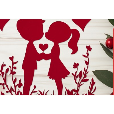 Σετ των 2 Intra απο ξύλο plywood 3mm-4mm πάχος – Paper Cut Valentine Couple Δίασταση 20x20 cm INTRAFABR-111729653