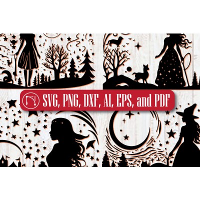 Σετ των 2 Intra απο ξύλο plywood 3mm-4mm πάχος – Πακέτο Paper Cut Witchy Wonders Δίασταση 20x20 cm INTRAFABR-81181707