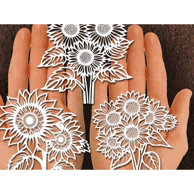 Σετ των 2 Intra απο ξύλο plywood 3mm-4mm πάχος – Papercut Sunflower DXF Δίασταση 20x20 cm INTRAFABR-125440680