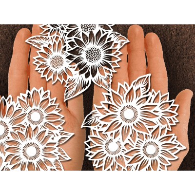 Σετ των 2 Intra απο ξύλο plywood 3mm-4mm πάχος – Papercut Sunflower DXF Δίασταση 20x20 cm INTRAFABR-125440683