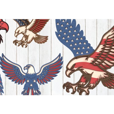 Σετ των 2 Intra απο ξύλο plywood 3mm-4mm πάχος – Πακέτο Patriotic Eagle Layered Δίασταση 20x20 cm INTRAFABR-122116365