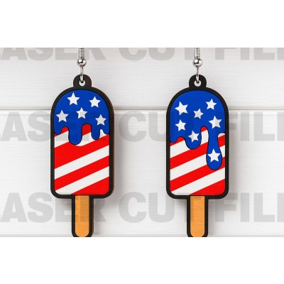 Σετ των 2 Intra απο ξύλο plywood 3mm-4mm πάχος – Patriotic Ice Cream Earrings Δίασταση 5x5 cm INTRAFABR-122673619