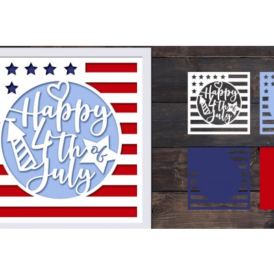 Όνομα Προϊόντος Σετ των 2 Intra απο ξύλο plywood 3mm-4mm πάχος – Patriotic Shadow Box, τρισδιάστατη αμερικανική σημαία Δίασταση 20x20 cm INTRAFABR-72985460