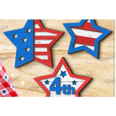 Σετ των 2 Intra απο ξύλο plywood 3mm-4mm πάχος – Patriotic Star Decor κοπής με λέιζερ Δίασταση 20x20 cm INTRAFABR-122197500