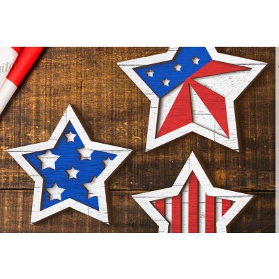 Όνομα Προϊόντος Σετ των 2 Intra απο ξύλο plywood 3mm-4mm πάχος – Patriotic Star Decor κοπής με λέιζερ Δίασταση 20x20 cm INTRAFABR-122197611