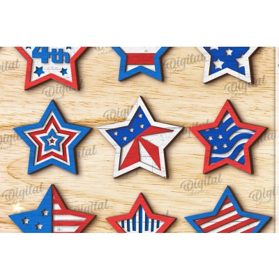 Σετ των 2 Intra απο ξύλο plywood 3mm-4mm πάχος – Patriotic Stars Decor Bundle Cut Laser Δίασταση 20x20 cm INTRAFABR-122061105