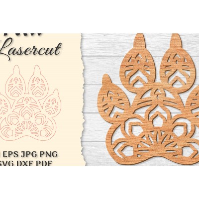 Όνομα Προϊόντος Σετ των 2 Intra απο ξύλο plywood 3mm-4mm πάχος – Paw Mandala Lasercut Δίασταση 20x20 cm INTRAFABR-121332061