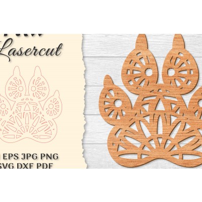 Όνομα Προϊόντος Σετ των 2 Intra απο ξύλο plywood 3mm-4mm πάχος – Paw Mandala Lasercut Δίασταση 20x20 cm INTRAFABR-121332075