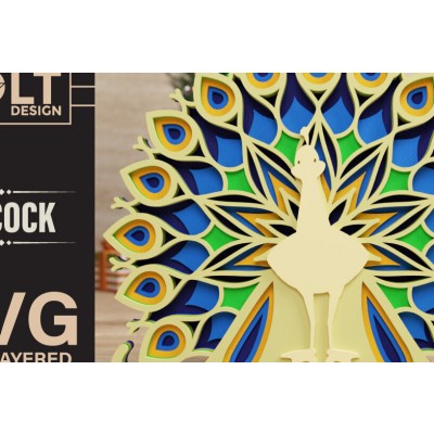 Σετ των 2 Intra απο ξύλο plywood 3mm-4mm πάχος – Αρχεία κομμένων πολλαπλών επιπέδων Peacock 3D Δίασταση 20x20 cm INTRAFABR-72247120