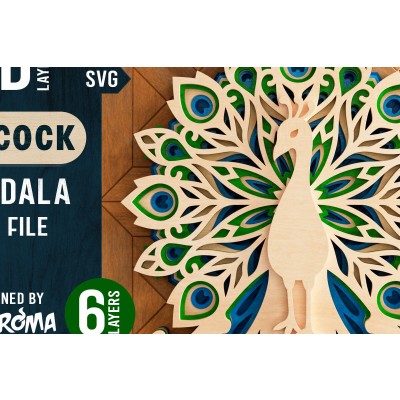 Όνομα Προϊόντος Σετ των 2 Intra απο ξύλο plywood 3mm-4mm πάχος – Peacock Mandala 3D Layered Δίασταση 20x20 cm INTRAFABR-21654422