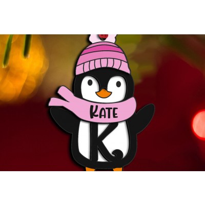Όνομα Προϊόντος Σετ των 2 Intra απο ξύλο plywood 3mm-4mm πάχος – Penguin Letter K Γιορτινό στολίδι Δίασταση 20x20 cm INTRAFABR-109528921