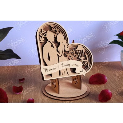 Σετ των 2 Intra απο ξύλο plywood 3mm-4mm πάχος – Personalized Lovers Heart |Ρομαντικό δώρο Δίασταση 20x20 cm INTRAFABR-110273340