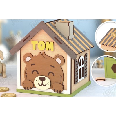 Σετ των 2 Intra απο ξύλο plywood 3mm-4mm πάχος – Εξατομικευμένη Piggy Bank | Αρκούδα Δίασταση 20x20 cm INTRAFABR-120841452