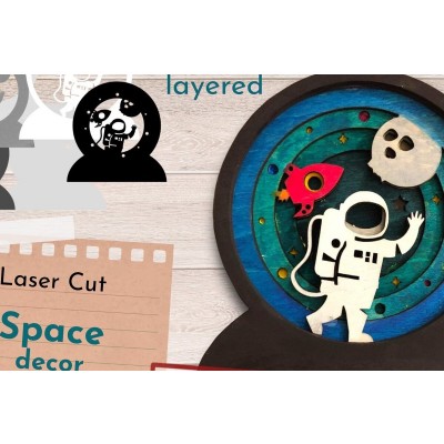 Σετ των 2 Intra απο ξύλο plywood 3mm-4mm πάχος – Space Snow Globe 3D, Astronaut Δίασταση 20x20 cm INTRAFABR-39881327