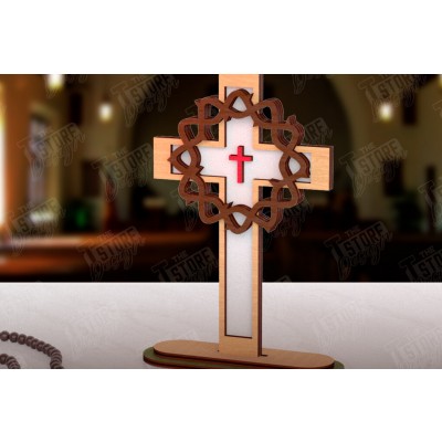 Σετ των 2 Intra απο ξύλο plywood 3mm-4mm πάχος Χριστιανικός Σταυρός με Κόψιμο Stand Δίασταση 15x15 cm INTRAFABR-121116513