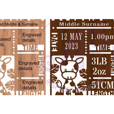 κοπής Stats Baby Giraffe Πρόκειται για ψηφιακό σχεδίου, ιδανικό για κοπή με ή plotter. Κατασκευασμένο απο Ξύλο από plywood [3mm ή 4mm], κομμένο με ακρίβεια στην βιοτεχνία Intrahome . Το φυσικό ξύλο προσφέρει μια κομψή, αυθεντική υφή και μπορεί εύκολα να βαφτεί ή να διακοσμηθεί σύμφωνα με το προσωπικό σας γούστο. Ελληνική παραγωγή – Κατασκευάζεται στην Ελλάδα με προσοχή στη λεπτομέρεια και υψηλές προδιαγραφές ποιότητας. ✔️ Υλικό: Plywood υψηλής ποιότητας ✔️ Διατίθεται σε πάχος 3mm ή 4mm ✔️ Ελαφρύ, ανθεκτικό και εύκολο στη χρήση ✔️ Ιδανικό για βάψιμο, χάραξη, κόλληση και χειροτεχνίες ✔️ Κατάλληλο για μπομπονιέρες, διακόσμηση, δώρα και DIY projects ✅ Εγγύηση 2 ετών – Σε περίπτωση σπασίματος, η αντικατάσταση γίνεται άμεσα, χάρη στην τοπική ελληνική παραγωγή μας. Ιδανικό για δημιουργικούς ανθρώπους που αγαπούν το DIY. Μπορεί να γίνει ξεχωριστό δώρο με προσωπικό χαρακτήρα. Φέρνει “χειροποίητη” αισθητική στη διακόσμηση. -files- Ελληνική χειροποίητη παραγωγή → στηρίζετε τοπικούς