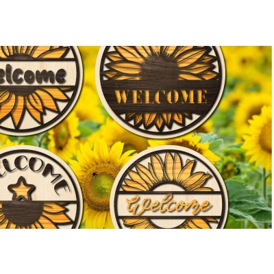 Σετ των 2 Intra απο ξύλο plywood 3mm-4mm πάχος – Πακέτο καλωσορίσματος Sunflower Round Δίασταση 20x20 cm INTRAFABR-28744748