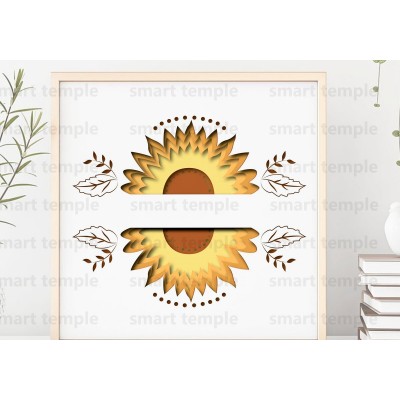 Όνομα Προϊόντος Σετ των 2 Intra απο ξύλο plywood 3mm-4mm πάχος – Χαρτί κομμένο Sunflower, Shadow Box Δίασταση 20x20 cm INTRAFABR-75484457