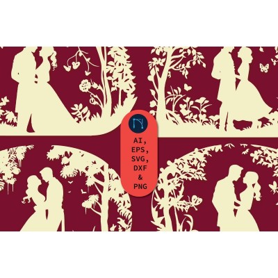 Σετ των 2 Intra απο ξύλο plywood 3mm-4mm πάχος – Πακέτο Wedding Silhouettes Papercut Δίασταση 20x20 cm INTRAFABR-80062689