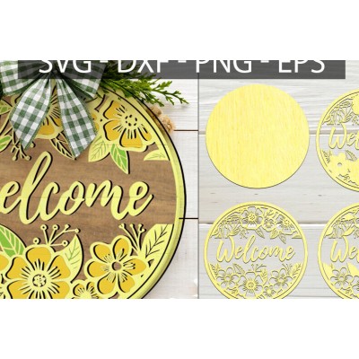Όνομα Προϊόντος Σετ των 2 Intra απο ξύλο plywood 3mm-4mm πάχος – Welcome Spring Door, Ξύλινη στρογγυλή πινακίδα Δίασταση 20x20 cm INTRAFABR-117546952
