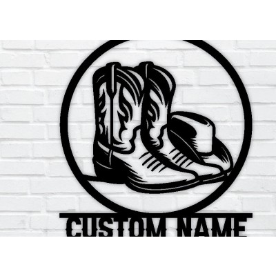 Όνομα Προϊόντος Σετ των 2 Intra απο ξύλο plywood 3mm-4mm πάχος – Western Cowboy & Cowgirl Boots Metal Art Δίασταση 20x20 cm INTRAFABR-97684280