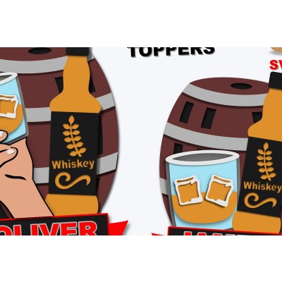 Σετ των 2 Intra απο ξύλο plywood 3mm-4mm πάχος – Whisky Toppers 3d Δίασταση 20x20 cm INTRAFABR-99955060